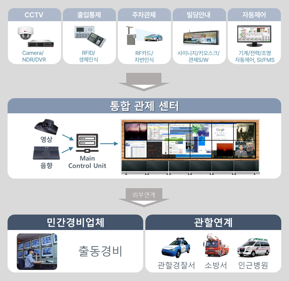 ※ CCTV, 출입통제, 주차관제, 빌딩안내, 자동제어 솔루션 연계
